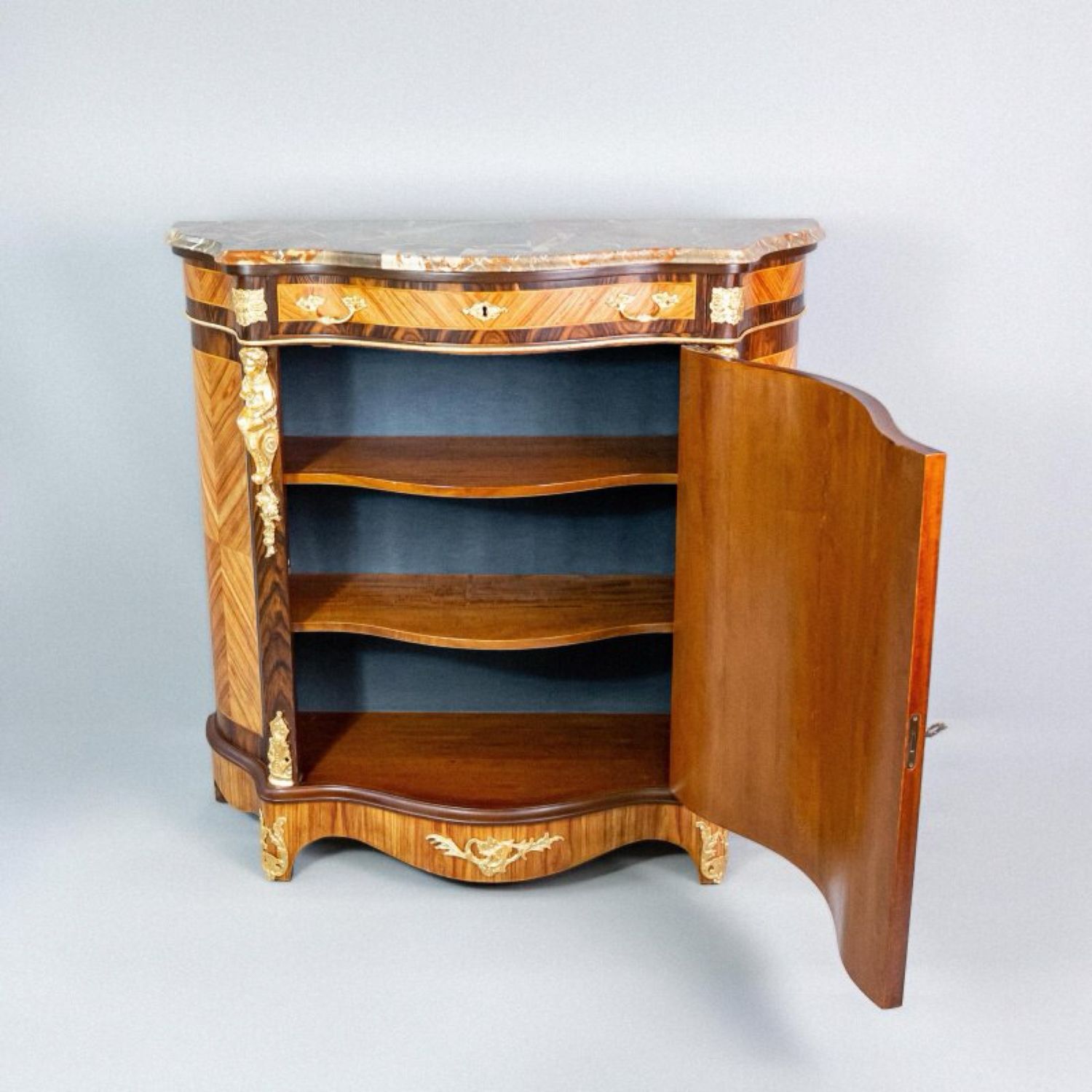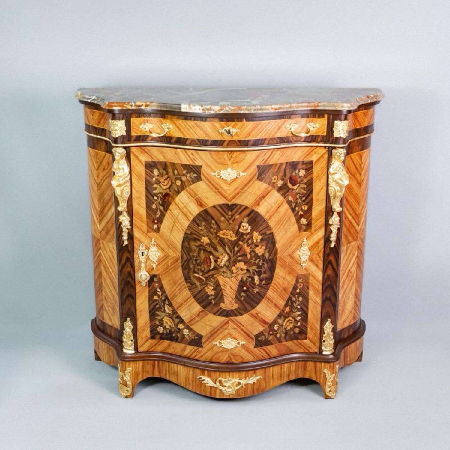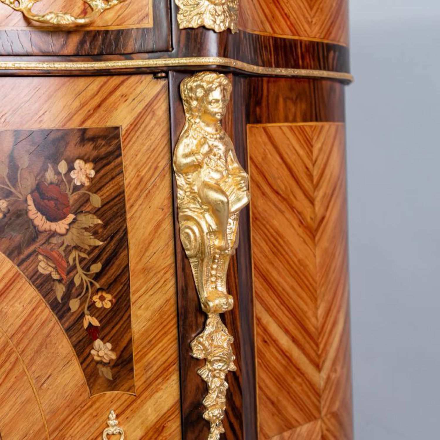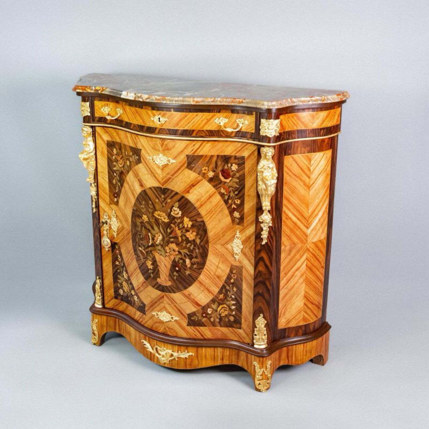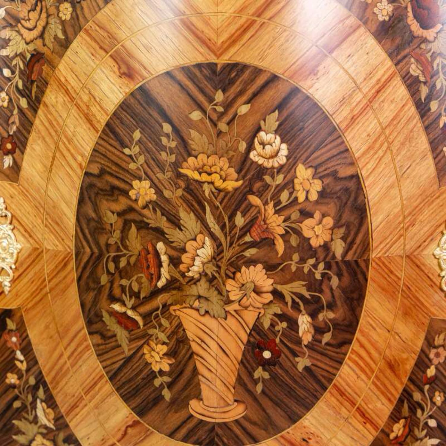 Материал Массив дерева, маркетри ценными породами дерева, бронза, литье, натуральный камень.