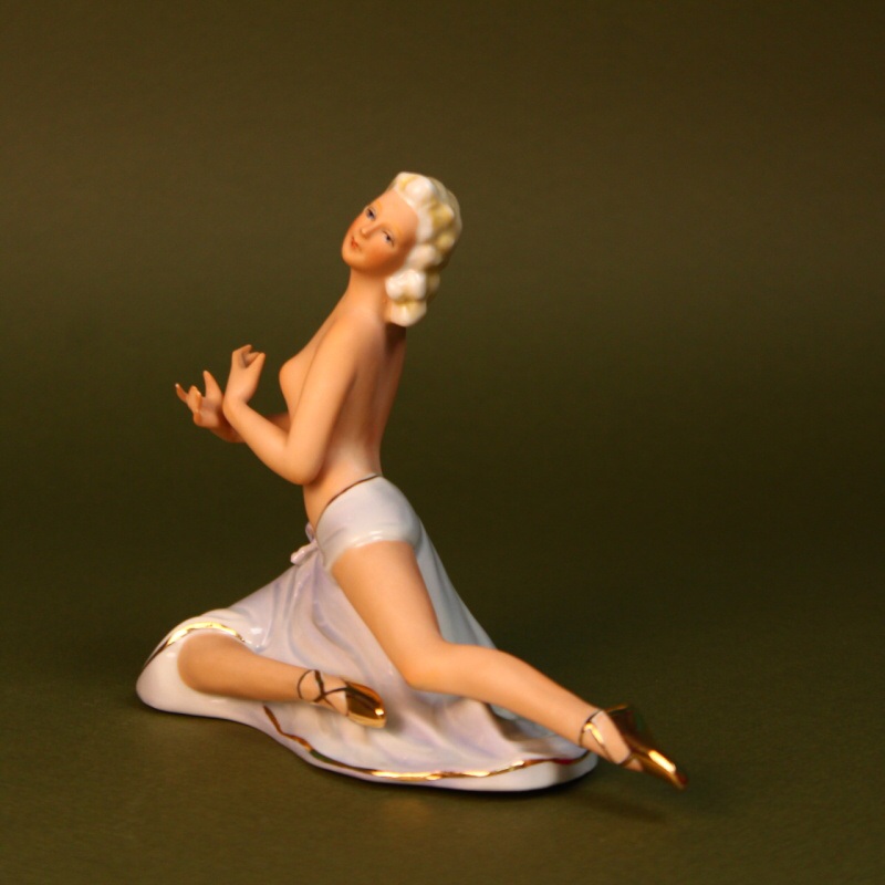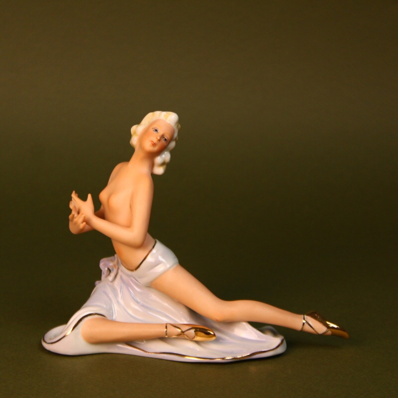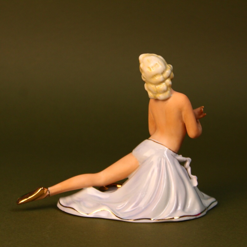 Грациозная фарфоровая статуэтка из серии «Балерины и танцовщицы», изготовленная на известной немецкой мануфактуре Fasold & Stauch. Ее поза подчеркивает красоту выразительного танца.
