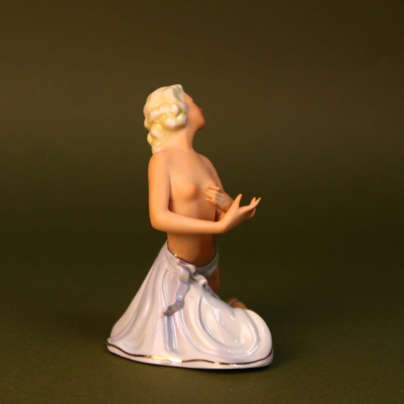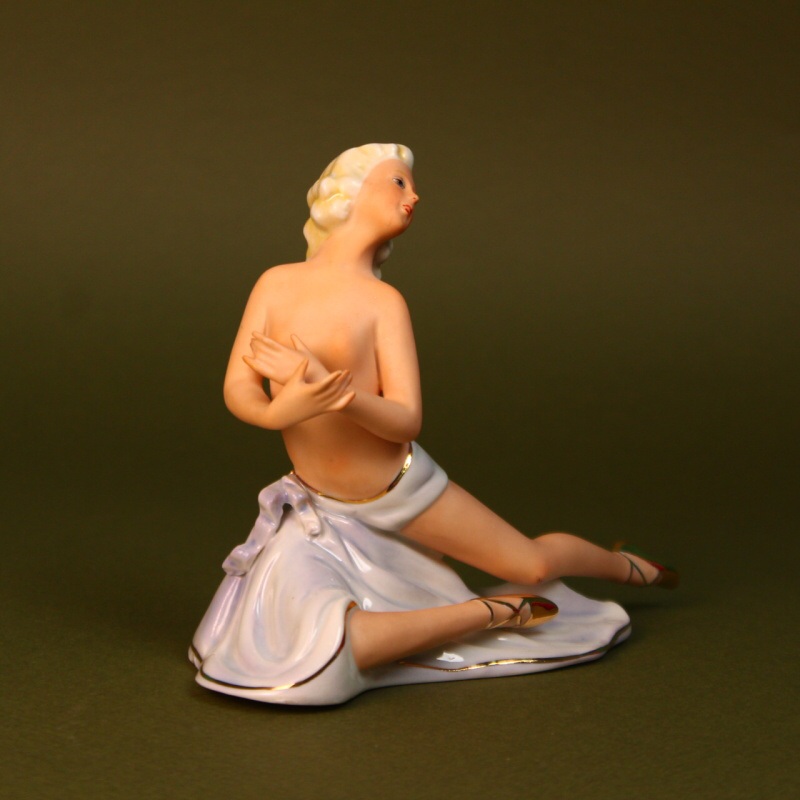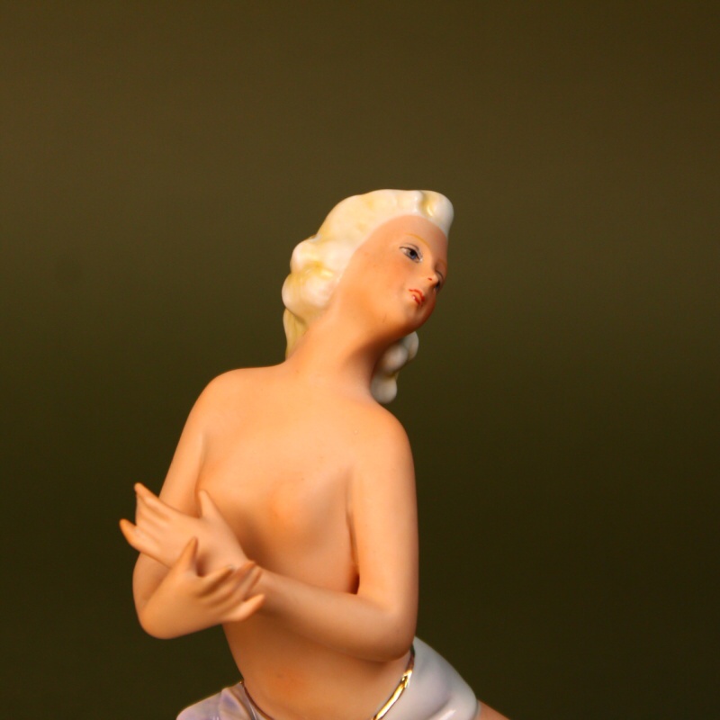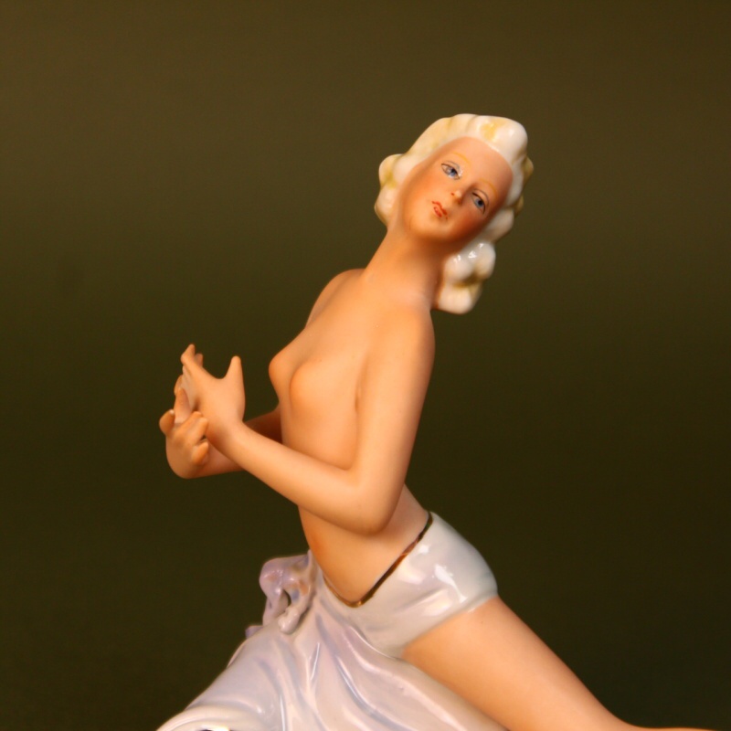 Изящная фигурка полна грации и изящества. Скульптура выполнена в традиционной манере этой мануфактуры — с использованием приема сочетания подглазурной и надглазурной росписи, что создает привлекательный эффект, который усиливает эстетическое восприятие предмета.