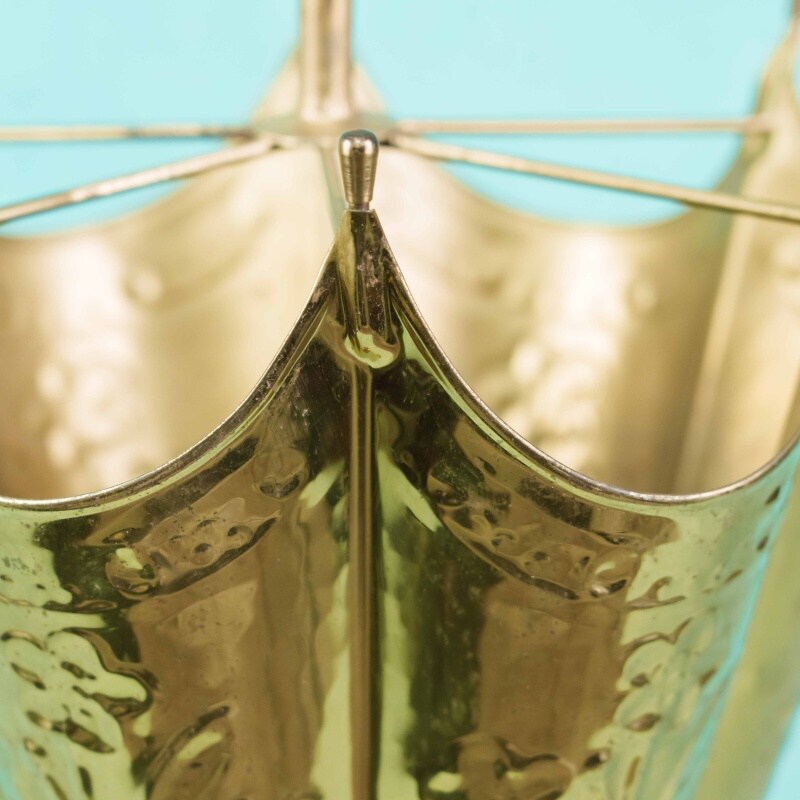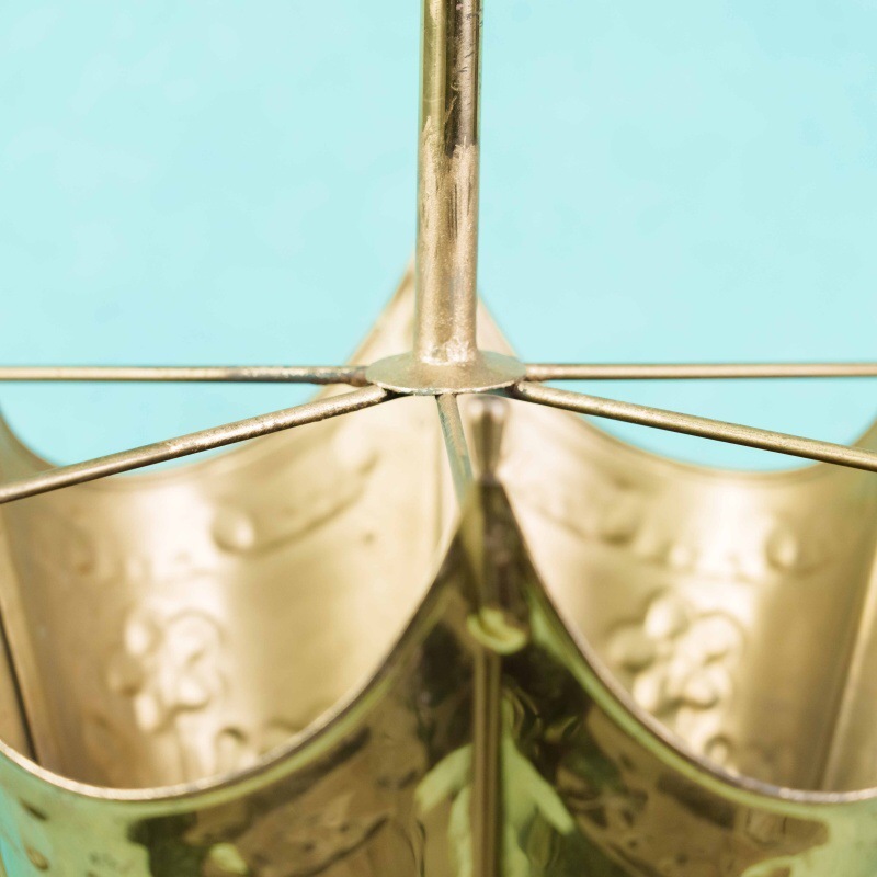 Широкое круглое основание обеспечивает устойчивость конструкции, а сама форма подчёркивает прямое назначение предмета — хранение зонтов и тростей в прихожей. Латунная поверхность отполирована и обладает благородным блеском, который гармонично впишется как в классический, так и в эклектичный интерьер.